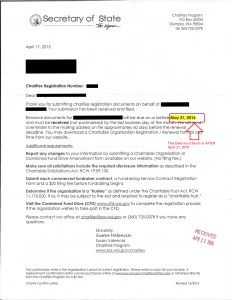 Double-check you have the correct Washington Secretary of State attachment letter and that the date in the body of the letter is AFTER April 21, 2016. It can be confusing because the Washington Secretary of State is responsible for several registrations if you are based here in Washington State.